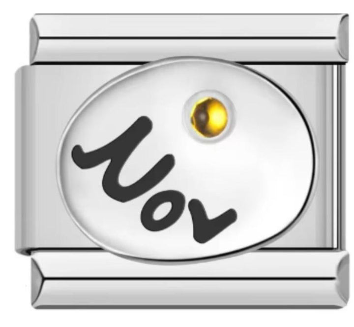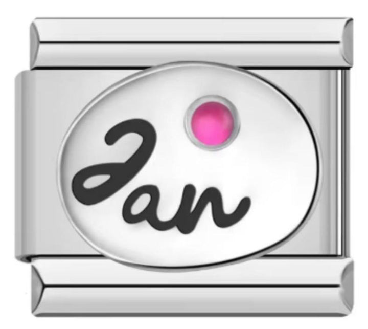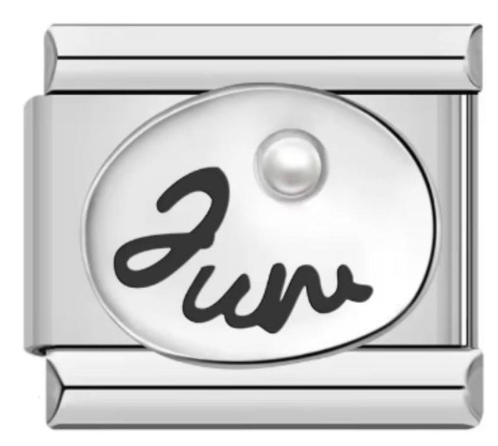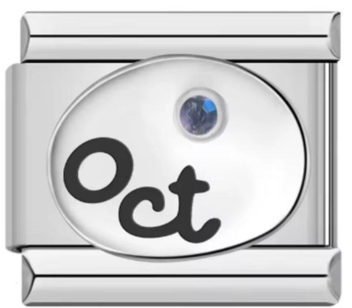 Este charm presenta los nombres de los meses del año, permitiéndote personalizar tu pulsera con una fecha especial o simplemente con la palabra del mes que más te guste. Con su diseño sencillo y elegante, es perfecto para quienes desean llevar consigo un recordatorio de un momento o época significativa.