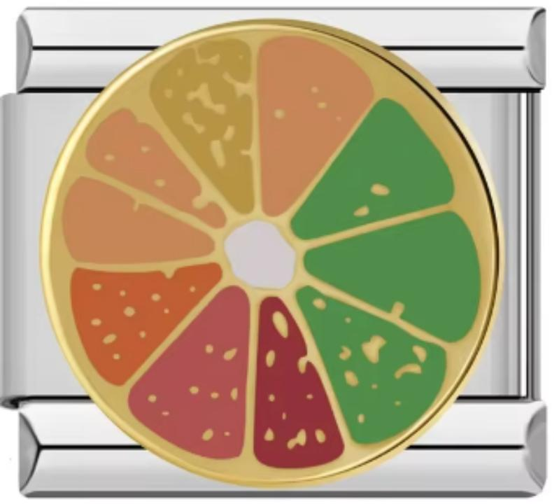 Este charm con un diseño de naranja multicolor es ideal para quienes buscan un toque vibrante y lleno de energía. Con su mezcla de colores brillantes, simboliza frescura, vitalidad y alegría, siendo perfecto para personalizar pulseras y collares con un estilo alegre y único.