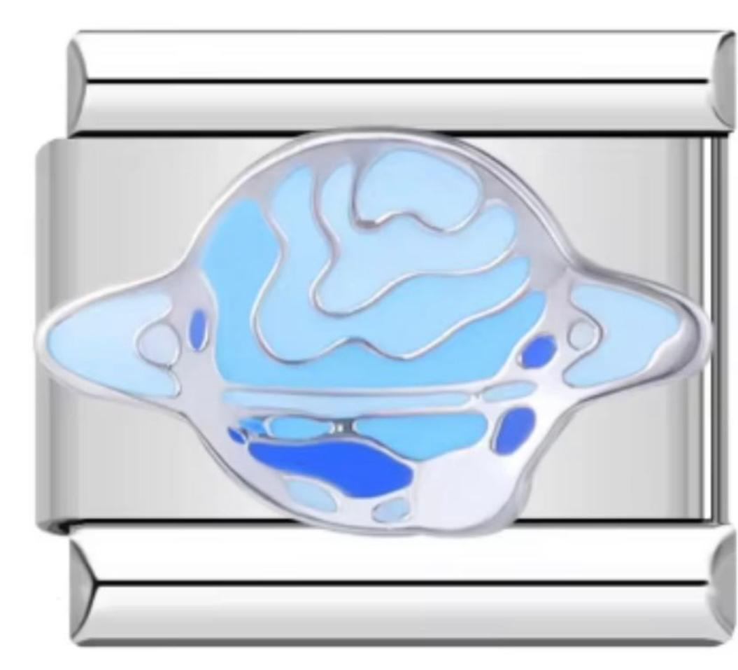 Este charm presenta un diseño de planeta azul, simbolizando el universo, la exploración y la conexión cósmica. Con su forma esférica y el vibrante tono azul, es perfecto para quienes buscan añadir un toque de misterio y belleza celestial a su pulsera, evocando la maravilla y la infinitud del espacio.