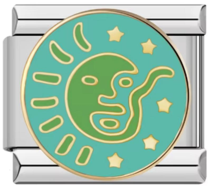 Este charm de sol verde aporta una energía fresca y vibrante a tu pulsera o collar. Su diseño luminoso y su tonalidad verde simbolizan la renovación y la vitalidad, siendo perfecto para quienes buscan un accesorio lleno de vida y estilo natural.