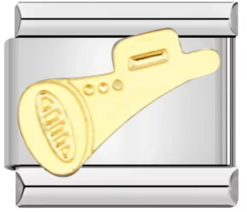 Este charm con la forma de una trompeta dorada es ideal para quienes buscan un toque musical y elegante. Con su acabado dorado brillante, simboliza la armonía y la creatividad, convirtiéndolo en el accesorio perfecto para personalizar pulseras y collares con un estilo sofisticado y lleno de ritmo.