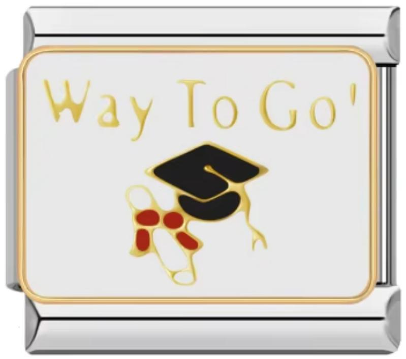 Este charm con el mensaje "Way To Go" es perfecto para quienes desean celebrar un logro o éxito. Con un diseño motivador y lleno de energía positiva, es ideal para personalizar pulseras y collares, simbolizando el triunfo y la perseverancia en cada paso del camino.
