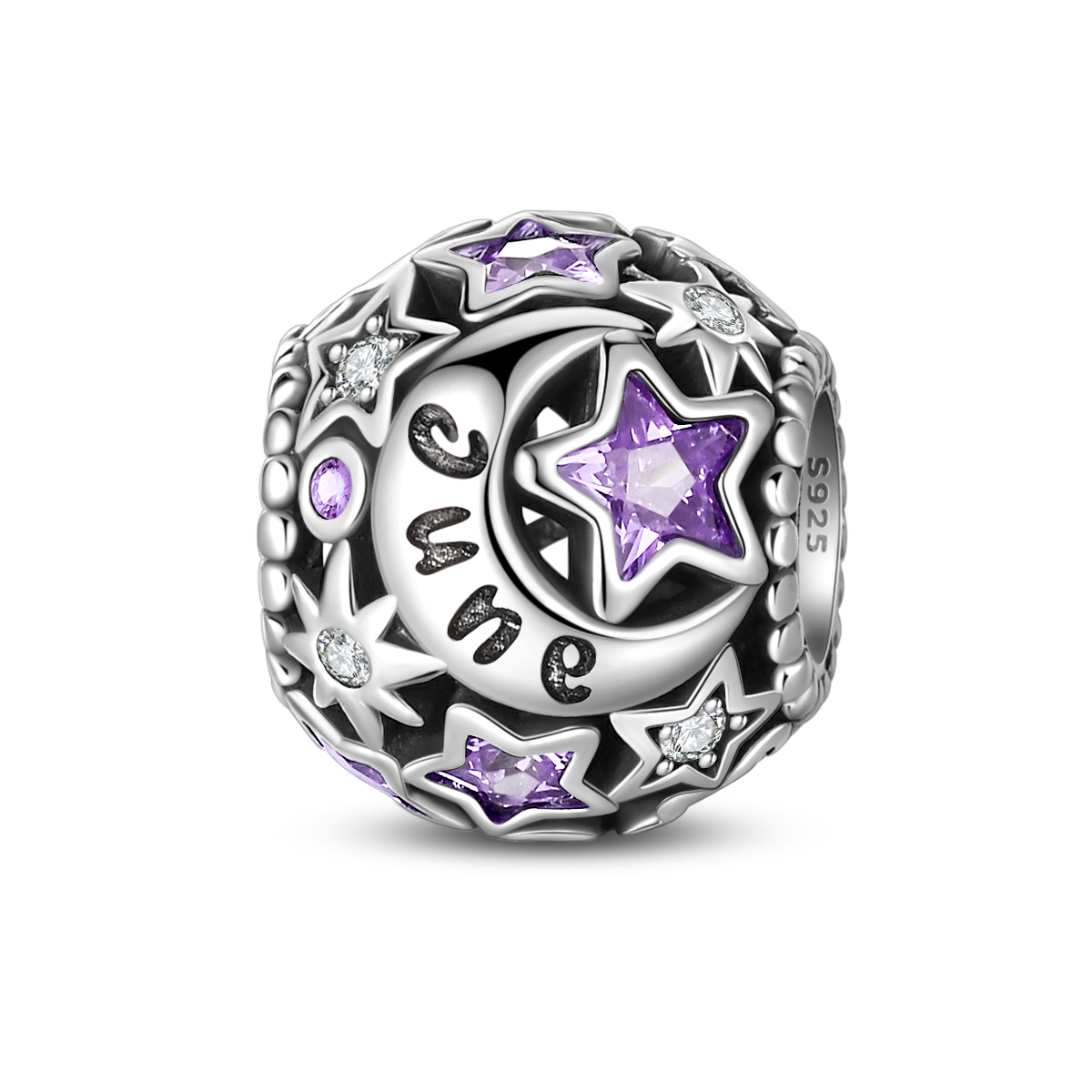 2. Piedra de nacimiento: La piedra de nacimiento de junio es la perla. Las perlas son un símbolo de sabiduría, pureza y elegancia. El charm puede incluir una perla o un diseño que represente la suavidad y el brillo de esta piedra preciosa.