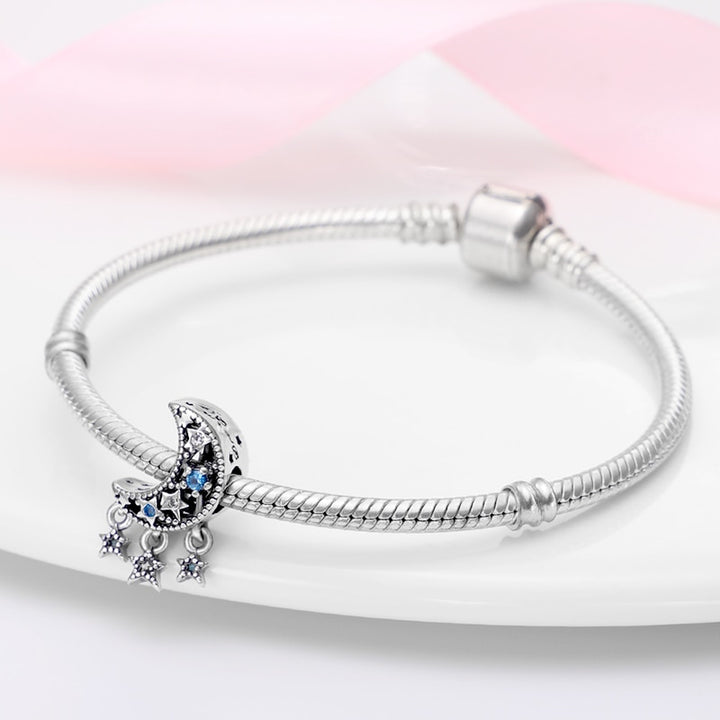 El charm está cuidadosamente diseñado para resaltar los elementos distintivos de la luna, con una forma curvada y detalles intrincados que reflejan la superficie texturizada y el resplandor de la luna. Cada aspecto ha sido meticulosamente elaborado para transmitir un sentido de calma y armonía, haciendo de este charm una pieza destacada en cualquier colección de accesorios.
