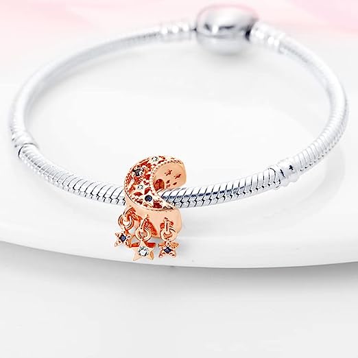 El "Charm Luna Dorada" es más que un simple adorno; es un recordatorio constante de la belleza y la serenidad que encontramos en la noche. La luna, a menudo asociada con la feminidad y la intuición, simboliza la conexión emocional y espiritual con el universo. Llevar este encanto contigo es como llevar un pedacito de la noche estrellada, una invitación a sumergirte en la magia del cosmos y encontrar paz en su luz dorada.