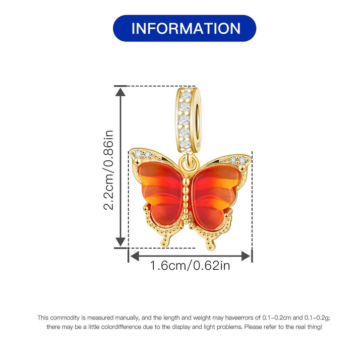 Fabricado con materiales de alta calidad, el charm presenta un acabado en tonos naranjas brillantes, evocando la calidez del sol y la alegría de la vida. Detalles meticulosamente elaborados, como las alas con textura y un brillo sutil, hacen que esta pieza destaque en cualquier colección.