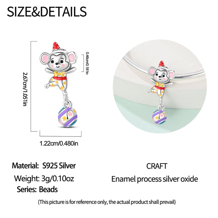 El charm Monito de Circo es una pieza divertida y encantadora que evoca la magia y alegría del circo. Con un diseño detallado de un simpático mono vestido con su clásico sombrero y colores vibrantes, este charm representa el espíritu juguetón, la curiosidad y la diversión. Es perfecto para quienes aman los recuerdos nostálgicos, los animales o simplemente desean agregar un toque de humor y ternura a su pulsera.