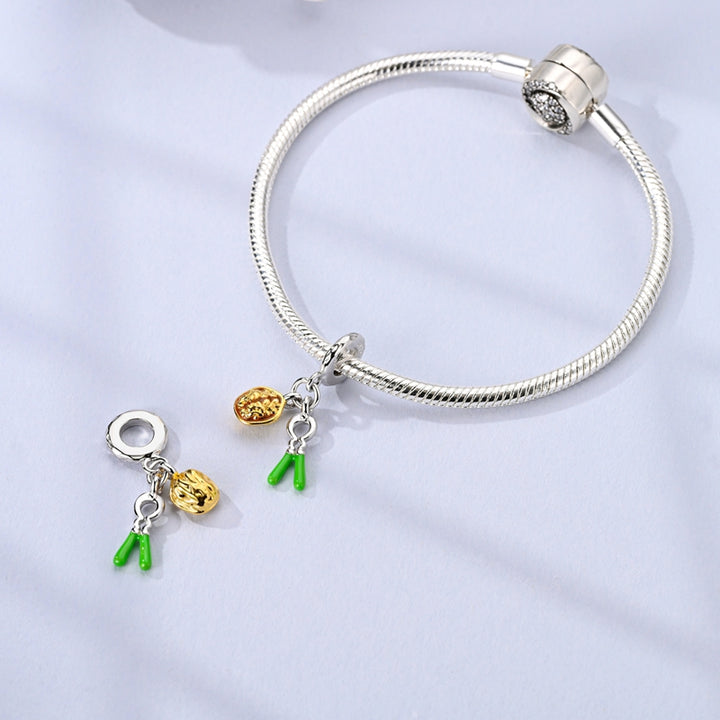 El Charm Nuez es un accesorio delicado y único, que representa la forma de una nuez. Este charm puede ser ideal para quienes buscan un diseño natural o que tienen una conexión especial con la naturaleza y la salud. Se puede usar como parte de una pulsera, collar o llavero, añadiendo un toque orgánico y simbólico a tu colección de joyería. La nuez simboliza la nutrición, la fortaleza y el crecimiento, lo que lo convierte en una pieza significativa para quien lo lleva.