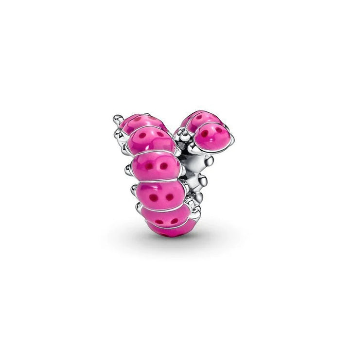 El diseño del charm presenta una oruga con tonos rosados, evocando la sensación de suavidad y delicadeza que caracteriza a estos pequeños seres. Los detalles cuidadosamente esculpidos añaden un toque de realismo y belleza, recordando la importancia de cada etapa del viaje hacia la transformación.