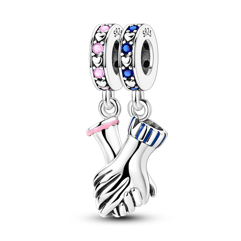 Este hermoso charm representa el amor y la unión, con dos figuras entrelazadas que simbolizan la conexión especial entre dos personas. Elaborado en plata fina y con detalles minuciosos, cada figura está tallada con un toque único, ideal para personalizar con iniciales o agregar junto a otros charms significativos en una pulsera. Es un accesorio perfecto para celebrar relaciones especiales, ya sea de amor, amistad o familia.