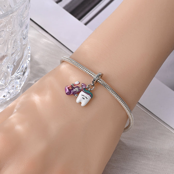 Este Charm Pasta Dental & Diente es un accesorio único y simbólico que rinde homenaje a la profesión dental, y se puede utilizar en pulseras, collares, llaveros, o cualquier otra pieza de joyería. Es una manera divertida de llevar un mensaje importante sobre el cuidado de la salud bucal de una forma visualmente atractiva.