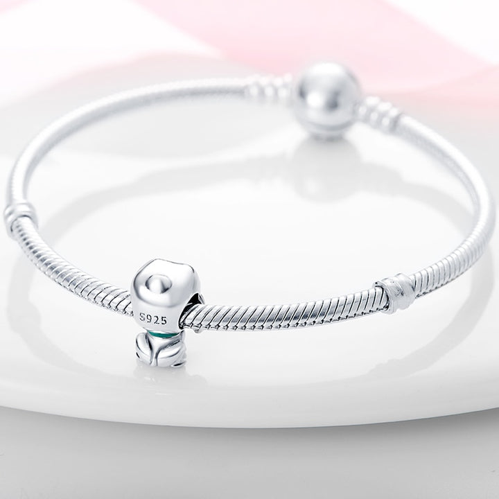 Nuestros charms, pulseras, anillos y aretes están elaborados en acero inoxidable de alta calidad, con un laminado de plata premium.