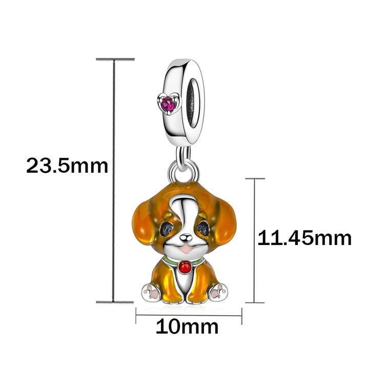 El charm "Perrito" es un tierno dije inspirado en la lealtad y el amor incondicional de los perros. Con un diseño detallado y expresivo, presenta la figura de un perrito con orejas caídas y ojitos adorables, elaborado en materiales como plata, esmalte o detalles diamantados. Ideal para amantes de los animales, este charm es un símbolo de compañía, alegría y fidelidad, perfecto para llevar en pulseras o collares y recordar siempre a tu amigo de cuatro patas.