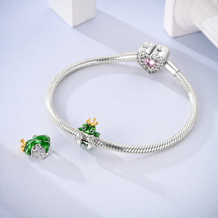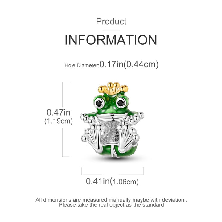 El Charm Príncipe Sapo es una encantadora pieza inspirada en los cuentos de hadas y la magia de los sueños cumplidos. Con un diseño detallado que representa a un pequeño sapo con su corona de príncipe, este charm simboliza la transformación, la esperanza y el amor verdadero que puede surgir de los lugares más inesperados.