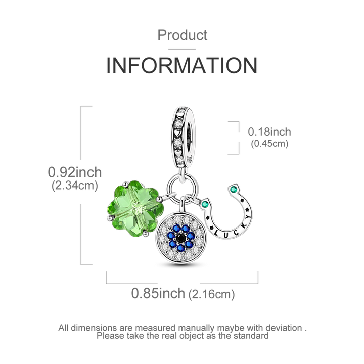 El Charm Suerte y Protección es un amuleto diseñado para atraer buena suerte y ofrecer protección a quien lo lleva. Generalmente, estos charms incluyen símbolos tradicionalmente asociados con la buena suerte, como el trébol de cuatro hojas, el ojo turco, la herradura o el elefante. También pueden incorporar elementos que representan la protección, como el escudo o amuletos religiosos. Este tipo de charm es perfecto para quienes buscan sentirse respaldados y bendecidos en su día a día. Es un regalo ideal para alguien que necesita un toque de energía positiva o para quien emprende nuevos caminos, como un nuevo trabajo o un viaje.