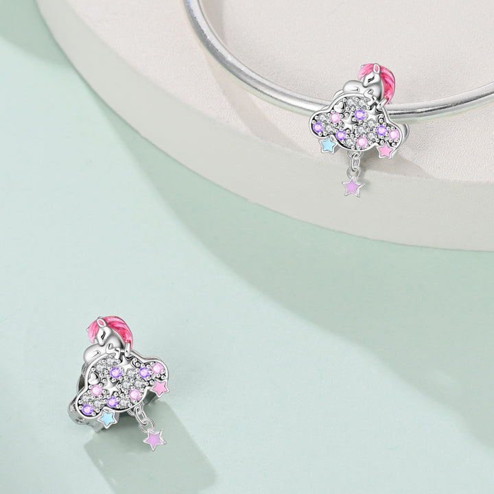 El charm Unicornio En La Nube es un diseño encantador que captura la magia y fantasía de un unicornio descansando suavemente sobre una nube esponjosa. Este charm es ideal para quienes aman los temas de fantasía, ofreciendo un toque tierno y soñador a cualquier pulsera o colección. Con detalles delicados y un acabado brillante, evoca un sentimiento de tranquilidad y misticismo, perfecto para personas que buscan un accesorio único y lleno de imaginación.