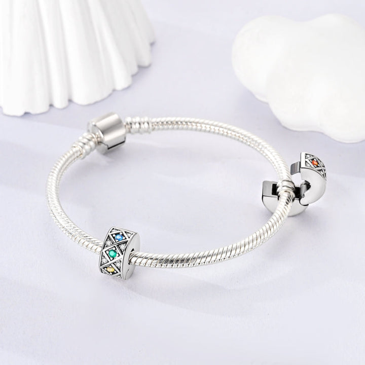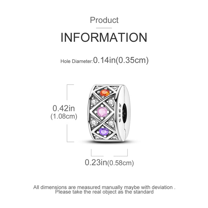 Perfecto para quienes buscan una pieza única y llena de vida, el Clip Multicolor complementa cualquier combinación de charms, aportando un toque alegre y dinámico. ¡Agrega este clip a tu pulsera y celebra la belleza del color en cada día!