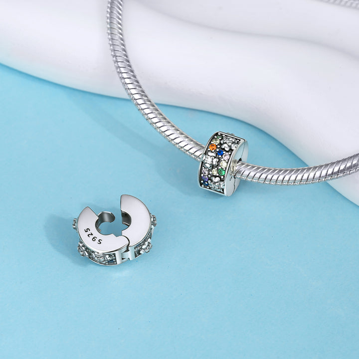 Los clips son accesorios diseñados para distribuir equitativamente los charms en una pulsera, manteniendo un equilibrio visual y funcional. Por su parte, las cadenas de seguridad evitan que los charms se caigan si la pulsera llega a abrirse accidentalmente.