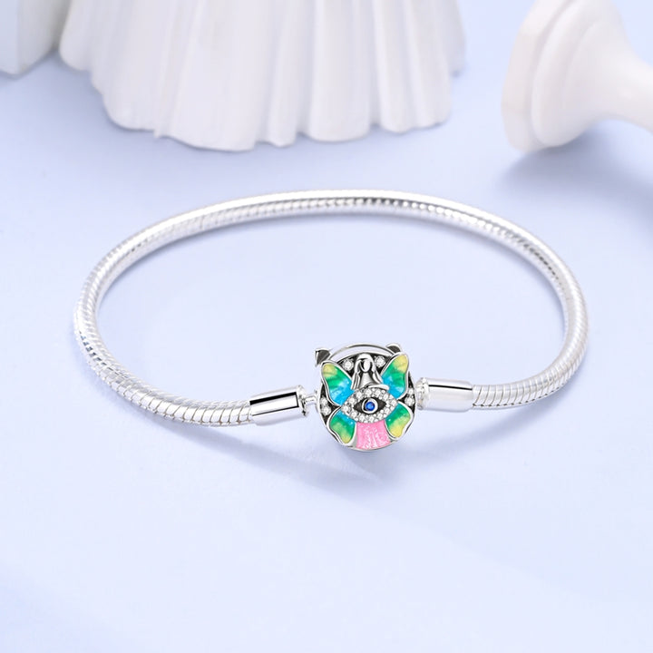 Los clips son accesorios diseñados para distribuir equitativamente los charms en una pulsera, manteniendo un equilibrio visual y funcional. Por su parte, las cadenas de seguridad evitan que los charms se caigan si la pulsera llega a abrirse accidentalmente.